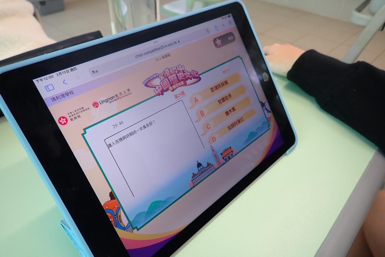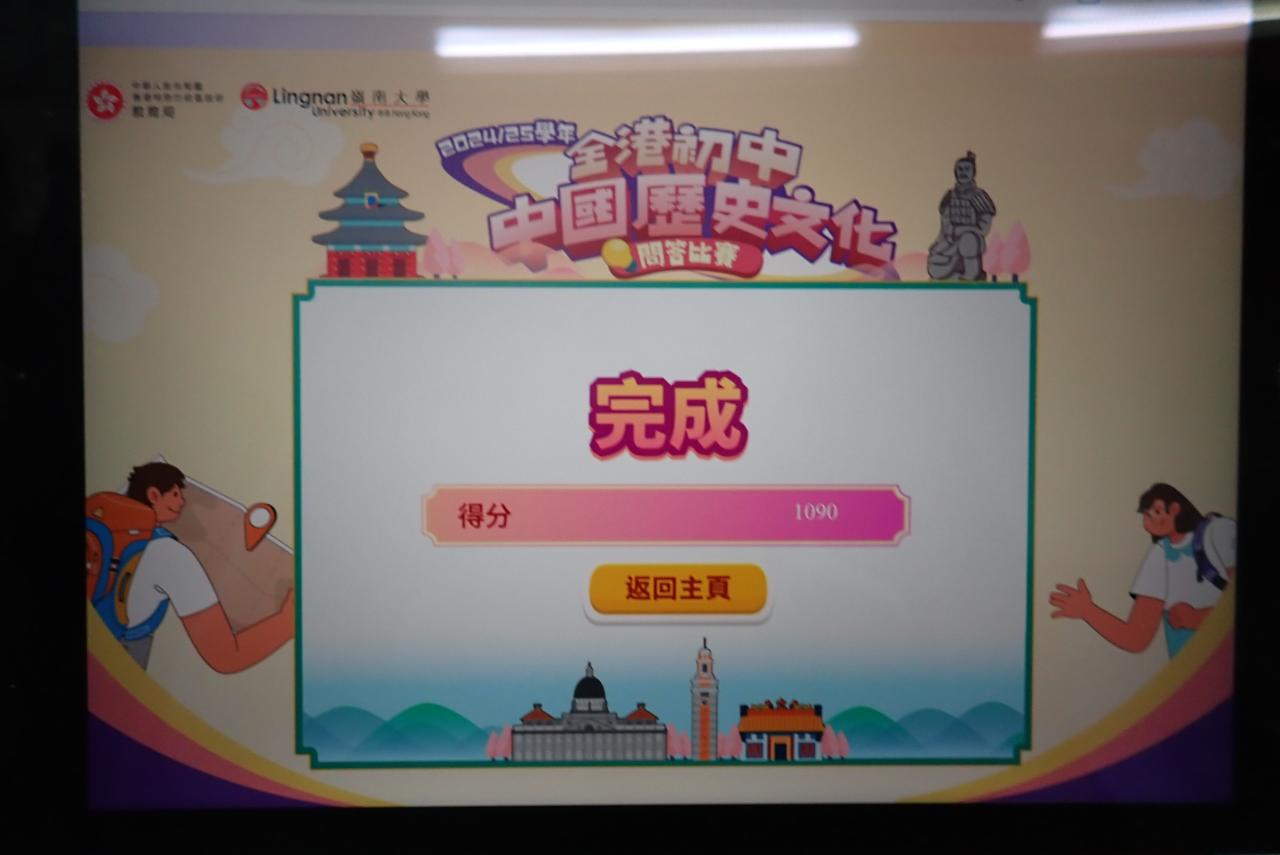 2025-03-13 2025年3月13日:中國歷史文化問答比賽是次比賽由香港特別行政區政府教育局主辦、嶺南大學香港與華南歷史研究部協辦,旨在促進自主學習,培養學生學習中國歷史文化的興趣,從而提升學生對中國歷史文化的欣賞與傳承。